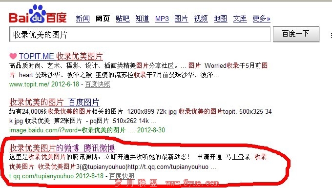 如今的微博在互联网可谓是越做越火热,除了受到很多平常老百姓的喜爱之外,很多的明星也是驻扎于此,并且微博对于搜索引擎而言给予的权重也是极其高的,从下图中“收录优美的图片”这个关键词中我们就可以看得出来微博的权重有多高。