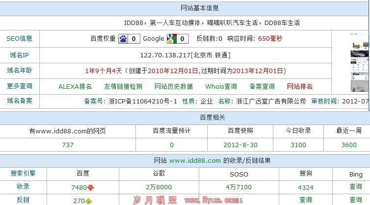 大家可以从上图看到一些关于这个网站的基本信息