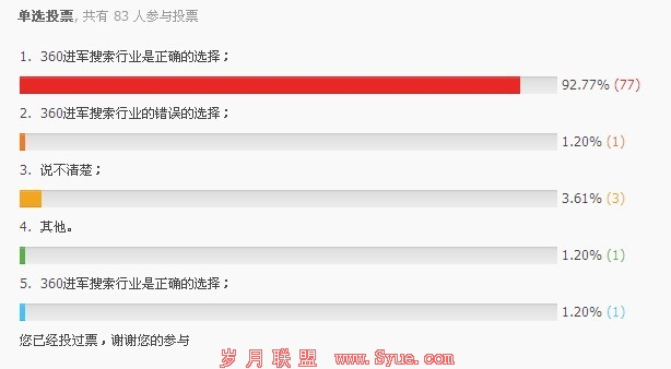 3、站长心理。相信广大站长都有多多少少都有过被百度惩罚的经历,笔者做站也是,从不收录,到被降权,到被K,到被沙盒,然后重新做站,又被K,最后还是终于摸到了百度的一些规律,让自己的站得以生存和发展。没有办法,正所谓“百度掠我千遍,我带百度如初恋”,没有那种打不死的小强精神,你是很难将网站的排名做起来的。最近的几次大更新,连SEO界的老大级人物王通等人网站都被K了,直接让一部分从事网络推广的朋友直接失业,但是用户体验并没有得到什么提升。百度的战略很明显,“把一部分做SEO的站长直接干掉”,但是最终没有办法,大家还是的看百度脸色行事,360的出现,正是解救了像我一类站长的苦恼和忧愁,几乎超过90%的站长都积极拥护360。
