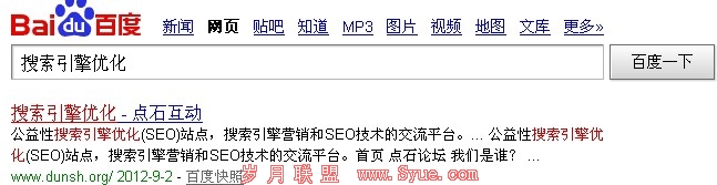 另一方面是这些关键词是很容易做上去的,假如我们能把水泵这个词做上去,其实像抽水机这样的词也是很容易做上去的。就像点石论坛在百度的表现一样,大家看看