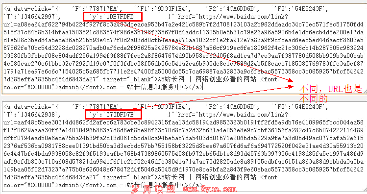 在如下的测试中,发现所对应的URL并非一成不变的,而是有一些变化,而且在a标签中出现的参数也发生了一些小小的改变,相信也是为了防止一台机器刷点击所生产的应对方案,这种方案也让点击器失去了原有的价值。