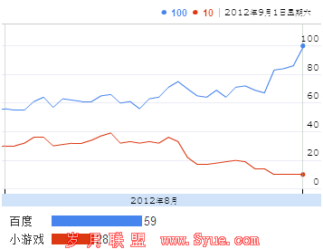 用“小游戏”这个搜索词代表小白用户,用“百度”这个搜索词代表普通网民。看图得出推论:一方面小白用户被直接拐走,一方面网民在呼唤被 360 墙了的百度服务(可惜的是,大家在找百度知道)。
