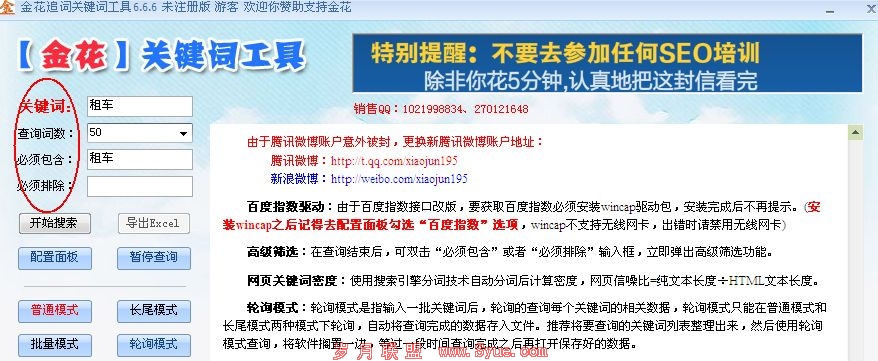 下载好之后,打开金花追词关键词工具,显示出这样的页面,如图所示: