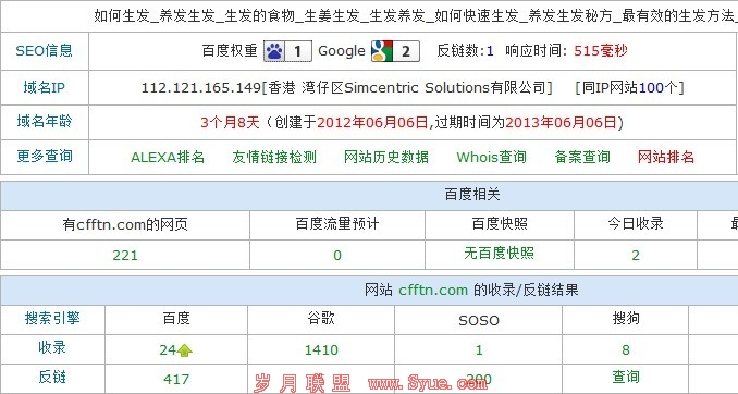 当我采取以上3个措施的时候,终于在9-10好见的效果,所有我们不要轻易的放弃,可能很多人看到这里会说,这不是百度对新站的考察期?而这恰恰相反,因为在之前的3个月里,百度么有放出一个首页,内容页还可以说是考察期,所有我就判定这进入了“沙盒”在这提醒下广大的站长朋友们,遇到“沙盒”并不可怕,可怕的是你那个坚持的恒心,本文由褥疮的治疗http://www.aojjj.com/sxey/82.html.褥疮原创码字,欢迎转载,谢谢!