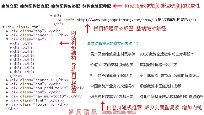4、栏目标题用h3标签嵌套,详细栏目链接直接加到栏目标题之上,形成了很好的锚文本链接。