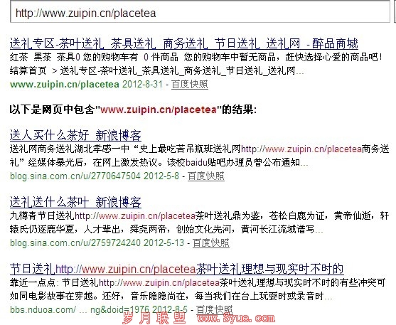 这个页面是醉品商城的送礼馆页面,网站栏目页的默认的路径是http://www.***.cn/placetea/,在百度搜索发现这个路径并没有被收录: