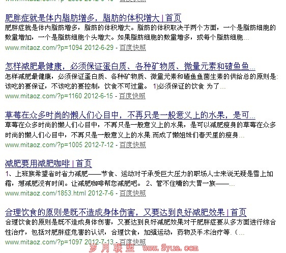 现在的网站还有许多文章快照是第二次标题减肥相关的。