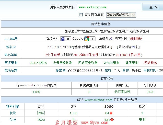 当时被K站,又要通不过备案,心里一横,想着反正减肥站也没能有个好空间,就换一个标题吧,也就这样有了第三个标题,有关紫砂壶的网站名,本来第二次更名的时候做了一个多月有了反应,百度有了快照,也给更新了。那时还处在新站期,网站是在三个月内。但这次就没有这么容易了,网站已经处于沉淀期,再次更名的时候已经是五个多月的老站了,网站已经更名有了两个月了,百度快照再也没有再出现,估计是被K到百度不认了。