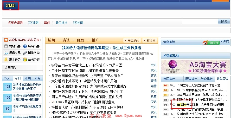 如果你细心地观察,你就会发现当我们搜索任何的关键词后,在每一个搜索结果都有相应的百度快照链接。当我们点击这一些链接可以直接进入快照页面。如下图所示的为某站长网的首页快照页面。