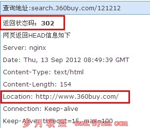 上图表示的是,这个URL是进行302跳转的,跳转的地址是京东首页,这样做可能让搜索引擎认为凡是京东的搜索错误页面多是存在的,那么错误页面可以是无数的URL,那么这些URL302之后全部都是对搜索引擎存在的,而且跳转到首页,更加是对于首页权重的一种稀释,这是一种很不正确的seo的方式,在这里点出来,也希望朋友么您多多交流吧,记得以前也和一个朋友进行讨论过错误URL的设置问题,最后也是得到了404页面最好返回404信息。而不是其他状态吗。