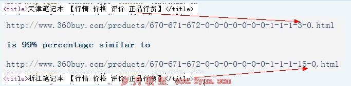 从这一张图中,我们可以看到,这两个URL基本上设置的是一样,而且通过文字检测工具之中,相似度突破了80%,可见文章页面重复读太高太高了,对于seo来说,这就是一个缺陷吧,毕竟在京东上一个城市对应的是更多的产品分类,所对应的产品URL不同,这就是让seo陷入了不断分类页面相同更多境地。对seo来说并非友好