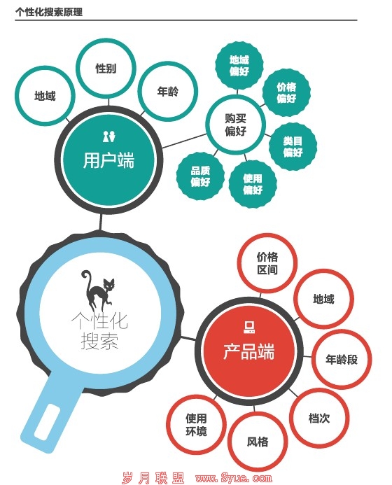 所以个性化搜索,最重要的目的就是根据不同人群以往的购买偏好,为客户提供与之类似的商品,用更加精准的定位,契合度更高的搜索结果,来提高产品的点击率以及店铺的转化率。