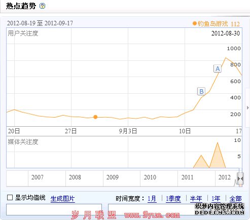 如果你是一位游戏站站长,可以开发一些钓鱼岛小游戏,相信一定会让那些在大街上玩“真人游戏”的热血青年感兴趣的,还能增加用户对网站的好感,这种热门事件还可以带来不少相关流量,搜索“钓鱼岛游戏”可以看到这一指数最高时达到八百多。对于视频网站来说需要提醒的是千万要去掉钓鱼岛事件视频的相关广告,如果打开电脑你迫不及待地想看关于钓鱼岛最近的视频,但漫长的广告将会大大影响你的心情甚至让你产生关闭页面的冲动。此外很多资讯站的朋友老觉得没有什么原创文章可写,那是因为他不会发现,不会从热点事件中发掘,如果以钓鱼岛事件为着眼点,写一篇文章,发表自己的看法也是很容易受到用户欢迎的。