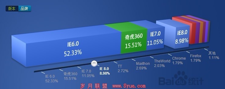 随着2010年5月份谷歌退出中国市场后,百度最近两年可谓是顺风顺水,失去了谷歌这个强大的竞争对手,百度的市场占有率得到大幅度提高,截至2012年 9月,百度市场占有率已经高达72%。如此利好的数据,百度并不安心,因为搜索引擎市场暗藏一些异类,如最新出现的360搜索,让百度感受到潜在的危机意 识,因为360安全浏览器目前已经占据了15%的市场份额。那么我们还是来看百度统计流量研究院的一组数据: