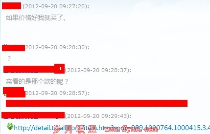 这种应该是很多淘宝客都遇到过的,当时我并不在意。真到今天我才知道这么神奇!今天我就找了前三家去聊天,一般用户点前三的机率是最大的,所以我只聊前三个就可以了。在聊第一家的时候,没有说到几句话就问题了!还是上图: