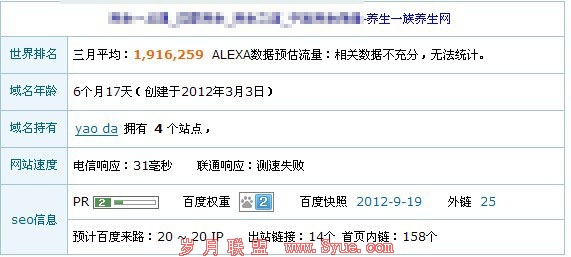 今天星期四,临睡觉前了,我还是跟很多站长一样,查看一下网站的情况!尽管我其中一个网站被降权了,并且降权了4个多月,但是我还是会坚持每天看看网站的近况!因为本人也是新手,很多地方也不是非常懂,当初降权的时候我就找原因,发现友情链接有问题,我就撤销友情链接,然后文章质量全部是采集,我就去伪原创文章!外链群发的全部撤掉!但是时间过去了4个月,还是没有任何动静!那么我是如何恍然大悟,让我的网站起死回生的呢!我们先来看看我的网站的现在具体情况,如下图:
