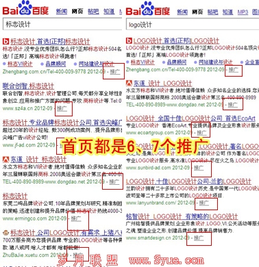百度竞价已经逐渐蔓延到各行各业,只要搜索存在商业利润的词汇,基本都有好几个竞价排在前面。就连小小的标志设计行业,也是竞价满屏。