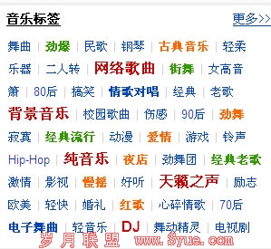 首先我们可以看看什么是标签,用一句很通俗的话讲就是一种虚拟的分类,也可以理解成一种“感性”的分类,我们常常会在百度听音乐,我们来看看如下图: