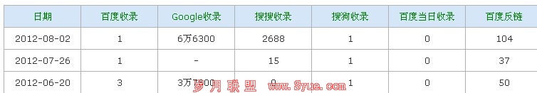 2、网站虽然没有外链,但是我想这个网站应该有的收录提交还是很多,从图中我们可以了解到有百度、谷歌、搜搜、搜狗收录了这个网站,而在这些搜索引擎信息库中只要提交了你的网站信息,那么搜索引擎蜘蛛都会来网站抓取的,只是时间问题。