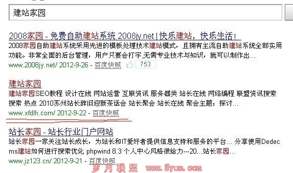 先从网站的标题与关键词来看,这个网站的标题与关键词只有一个词语:建站家园。从中我们就可以看出一个问题,这个网站的所有权重都积累在了这个词语上,站长可以想象一下,假如你的网站标题与关键词中需要优化的词语达到了十几个,十几个的权重与一个相比谁站优势呢?从中我们可以得到:一个网站只做一个关键比做N个关键词的效果更好。