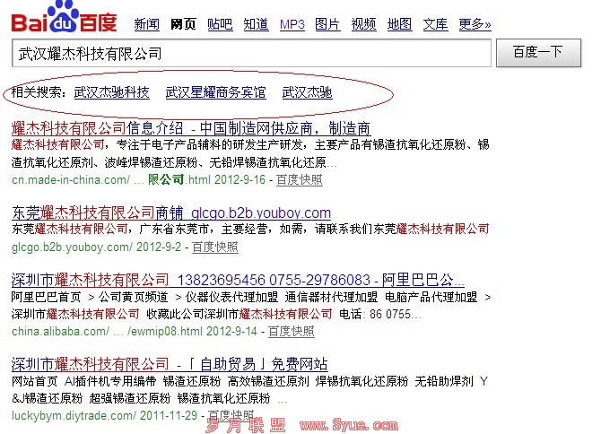 2. 根据百度相关搜索的排名机制,在合理的范围内多搜索自己的长尾相关,比如说“武汉耀杰科技”这个词,现在出现的相关是武汉杰驰科技,只需要把武汉耀杰科技有关的长尾 每天搜索5次以上,自然就会出现新的长尾了。