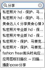iTunes平台上搜索关键词“分享”下拉列表如下: