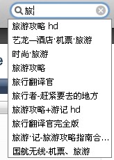 iTunes平台上搜索关键词“旅游”下拉列表如下: