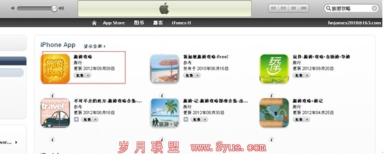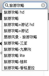 iTunes平台上搜索关键词“旅游攻略”下拉列表如下: