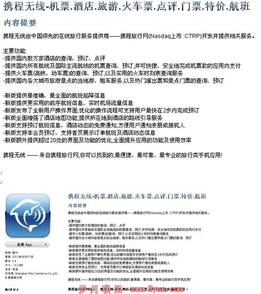 携程网aap详细页分析:tite(携程无线–机票.酒店.旅游.火车票.点评.门票.特价.航班)标题是根据产品功能来定义