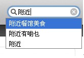 iTunes平台上搜索关键词“附近”下拉列表如下: