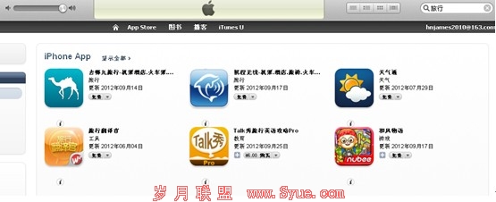 iTunes平台上搜索关键词“旅途”下拉列表如下: