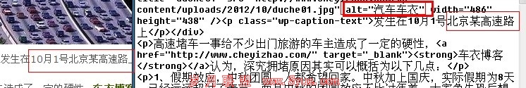 二、文章中既然已经插入了图片,但是如何才能让百度收录你网站的图片呢,alt、title,关键词都会起到作用,不过即使做了优化,也不能让百度很快的收录。这里告诉大家个窍门,申请一个百度空间,把图片发在空间上,标题就写某一人们新闻事件的关键词,再让关键词在内容部分多出现几次,另外,图片的描述一定要出现该热门事件的主关键词。(如上图--北京某高速路上堵车)