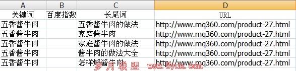 如上图,这是笔者做的一个简单的关键词EXCEL表格,当然算不上关键词词库了,我们需要开发一个网站词库系统,方便我们去管理众多的关键词。比如:五香酱牛肉这个关键词,围绕它的扩展词和长尾词有很多,而这个产品对应了一个URL页面。一个大型网站首先得做好SEO的第一步,那就是选词,由于关键词和长尾词实在太多,尤其是长尾词十分重要,因为长尾词的转化率是比较高的,所以我们要尽可能的多布局长尾词。词库的建立需要一些程序和软件的配合,这么大的工作量人工很难去完成,所以我们要有挖掘关键词的工具,有管理关键词的程序系统,还要研究长尾词的转化率。搞清楚哪些长尾词的转化率高,哪些长尾词没有转化率。