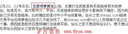 当文中提到了绿萝算法时候,相信正在浏览这篇文章的用户都会想知道绿萝想法的详细情况,于是zac就做了这个词的锚文本,并且指向他最近的一篇关于绿萝算法的博文去,让用户能够了解更多,这样做能够有效提高用户对网站粘度,seoer在添加锚文本的时候也应该学习zac,只有充分满足用户的需求的锚文本才是真正有意义的。