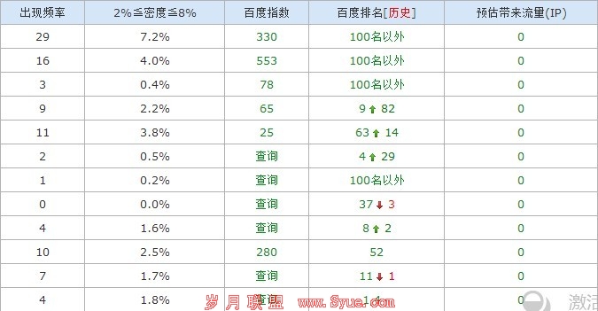 5、排名,除了品牌词以外其它的关键词都没有排名。