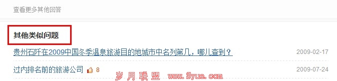 从两张图可以看出的是:不仅有问答标题、内容、时间还有其他类的问题,如果将这些比喻成自己旅游网的问题,相信可以减少用户对问答点击的跳出率吧。