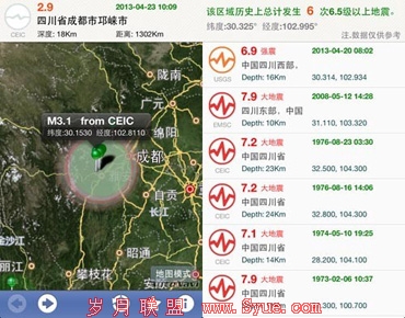 同类APP:《中国地震网》、《地震专家》、《Earthquakes》等。