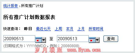 对于营销目标和评价指标中,推广信息展示次数和点击次数都可以从网盟推广系统的统计报告中获得。统计报告主要提供以下统计数据: