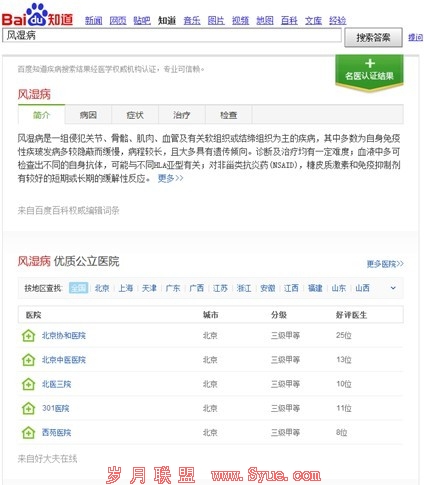 百度知道知识搜索医疗结果展现