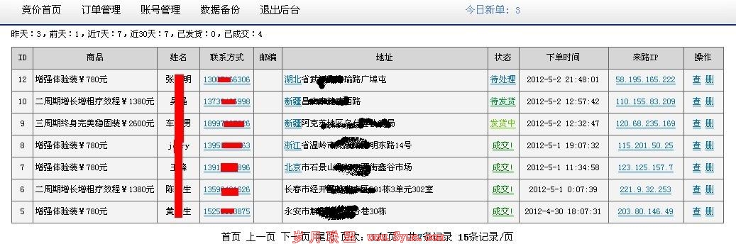 好了,放一下后台订单信息吧。