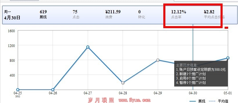 我们与27号的数据进行对比,发现,点击率上升了一倍,点击单价下降一半。这是因为账户结构优化的结果,也是我们认为的竞价策略。关于百度竞价策略的内容,我们建议你参阅下面的文章“广告圈之百度竞价从入门到精通(五):80%被忽视的百度竞价策略!”