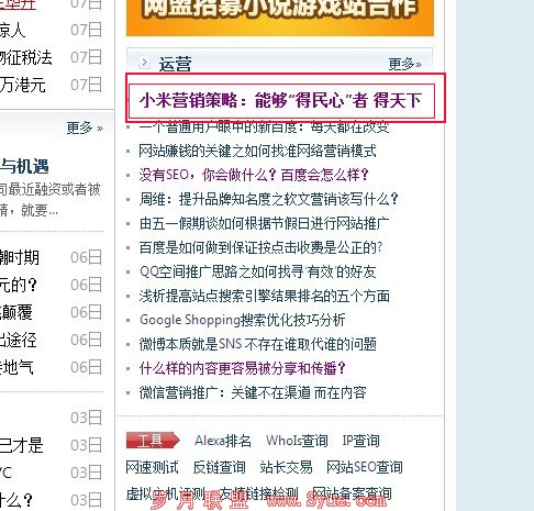 以小丹所写的文章中来看,这些所推广的文章并没有比之前好很多。但是比之前所写的那些SEO文章具有特色,尤其是那篇小米营销的文章,文章内容大都是小丹自己的个人感想,相信是每个人都可以总结出来的,之所以能够被站长网推广应该是它所独具的特色。毕竟像站长网这个地方,大都还是以SEO文章为主。