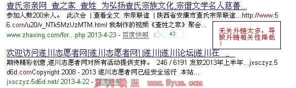 外链光有数量是不行的,一个高质量的外链更需要的是外链与网站的相关度。打个比方,我们做网站建设的,却把外链发布到一些娱乐生活论坛上,这样的低质量外链即使再发一万条也是对排名没有任何正面作用的。上述提及的网站就是典型的例子,笔者domain一下,发现90%的外链都是与网站无关的: