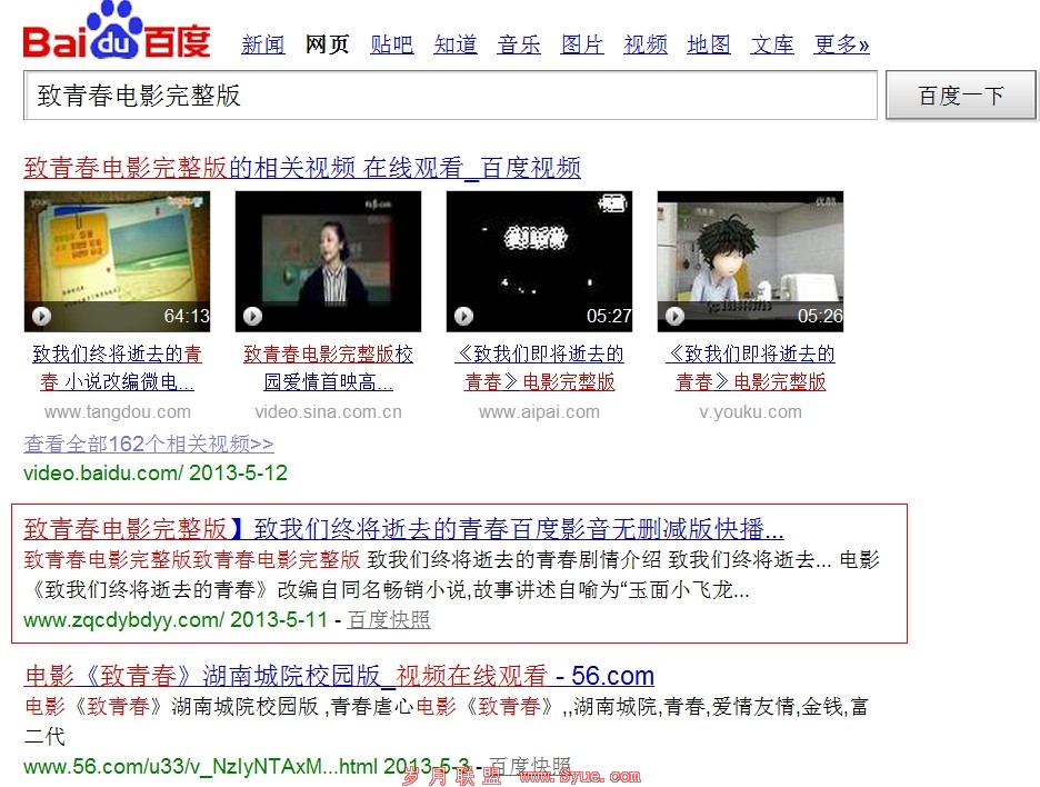 在电影院看电影和在家看是两种感受,有几个镜头还想回味,于是百度“致青春”,有个奇葩站,迅速进入我的视线。