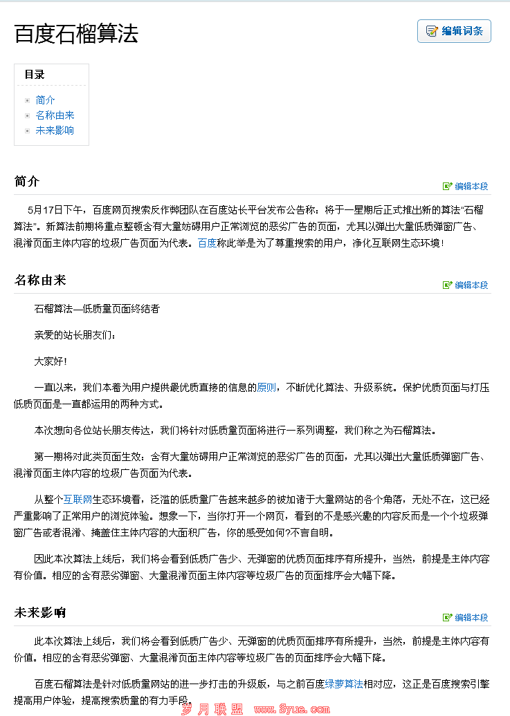 石榴算法第一期针对含有大量低质量的弹窗广告和大量混淆页面主题内容等垃圾广告的页面算法升级,以前也是有这种算法,只是没有像现在这么强调。石榴算法将会在近期正式上线,各位站长抓紧在这一周内检查自己的网站是否存在上述不良的广告,若有,请及时清理。