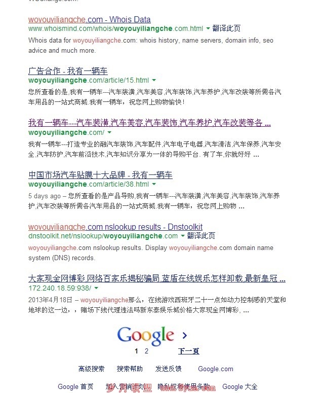 本人新建了一个网站www.woyouyiliangche.com,分别对google,百度,搜狗做了测试。为了能尽快被各搜索引擎收录,我直接进入了各大搜索引擎登陆提交页进行了提交(谁不希望自己的网站能尽快收录呢?:))。