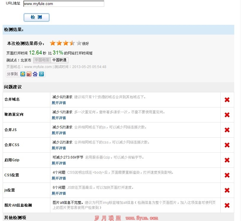 接下来说下它的弊端吧,这个工具好是好,也确实为站长提供了方便,但是有个最大的问题就是数据并非同步,大家可以site 你的站点,以及通过这个工具查询,在索引量方面是完全有出入的,这点真不知道是按照百度工具的来分析还是按照百度地址来分析,这是工具的不足,当然站长工具可以直观的反映出站点收录方面的情况,但是这个和通过其他站长工具所查询出来的确实存在很大出入。相信很多站长都有这方面的遭遇。其次就是网站优化建议,很多站长都是按照百度给出的优化建议进行修改,结果修改完了却发现排名没有升反而降了,而且有些必须的JS以及RAR是必须存在的,而百度给出的建议是合并,很多站长都这样去做了,结果效果并不好,所以在这一点方面,百度给出的一些建议其实并不符合百度蜘蛛的一些规则的,在一定的程度上给人朦胧的感觉,甚至错误的方向,我做自己站的时候就发现这样的问题,我之前是按照百度的建议进行修改,结果任何排名都没有,最后我干脆按照网站的布局来进行调整,其结果大跌眼镜,之前没排名现在居然全有了,而且权重还很高,所以我个人得出一个结论“百度的话不能不信,也不能全信,否则你的站点永无出头之日”,最后一个方面就是网站安全,大家都知道百度搞了个什么安全策略,检查你的网站等等一切,个人觉得那完全是忽悠站长的,对站长一无是处,最主要就是赚钱,大家都明白的,但是你又不得不用他的工具来检测,其实这有点让站长愤怒的,如果不加入就给你的站点挂个安全问题,这点很多时候站长苦不堪言,没办法,谁叫他是国内的最大的搜索引擎呢,所以这个工具对我们很多做站的站长来确实是很让人郁闷的。明明站点没问题,硬要检查出问题,而且用他们的工具检测的时候没问题,而百度排名上却挂上一个安全问题,本人实在不明白这样的情况下站长该何去何从。