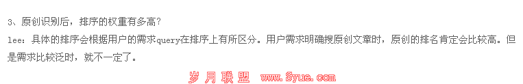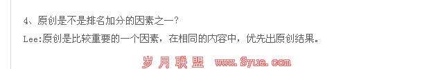 前文我已经强调过很多次了,我们最终关注的是关键词排名,现在百度已经给了我们明确的答复,原创是给排名加分的重要因素之一,那还有什么好说的,假如以前你认为,不写原创,多发些高质量外链也可以稳固排名,那么现在开始原创就要提升到你的日程中来了。还想给大家举个例子: