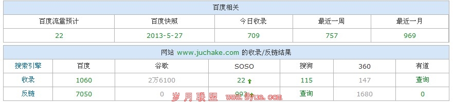 今天就以百度外链存在的问题与大家探讨下,百度站长工具推出后几天,聚茶客网站就在用百度外链工具,到今天已有两个多月了,很多站长也会发现,百度外链工具与其他站长工具的数据相差甚远,笔者用站长工具查询已有7050条外链。而用百度外链工具只有1332条外链,从下图可以看到数据的差距。