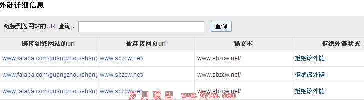 外链查询工具改版后,没有了过去查看被链接页面,链接关键词的分页,取而代之的是变成了一页显示的数据整合。分别分成了链接到您网站的url,被连接网页url,锚文本,拒绝外链状态,四列,站长们可以一眼扫关网站相关数据,在同一个页面中可以进行所有的操作,这种做法确实是可以让数据分析更加直观,而且操作也更加简捷,对网站的外链情况也可以一目了然。但是由于URL都放到一起了,初次体验,看上去有点眼花缭乱的感觉。不过相信习惯了之后应该会更加方便。